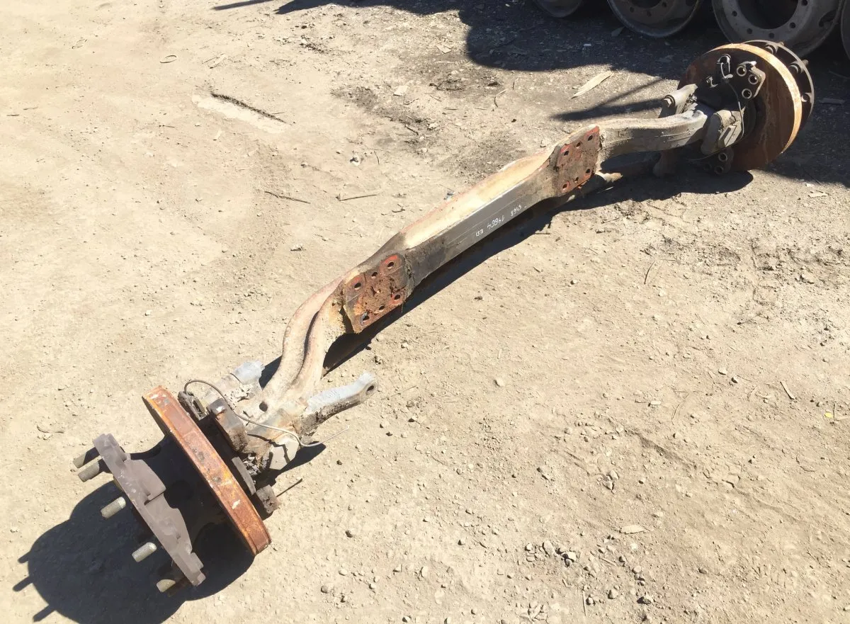 Axa față pentru Volvo, compatibilă cu modelele ce utilizează codurile de piesă 21175867, 20543284, 2116583. Produsul prezintă urme de uzură și rugină, specific utilizării anterioare. Este ideal pentru reparații sau înlocuirea axei frontale defecte.