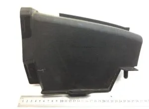 Descriere: Capac din plastic negru, destinat montării pe partea pasagerului a bordului unui autovehicul marca Mercedes. Acest capac are o textură ce imită pielea și este conceput pentru a se potrivi perfect în locul dedicat, oferind un aspect estetic și protecție suplimentară pentru componentele interne ale bordului.