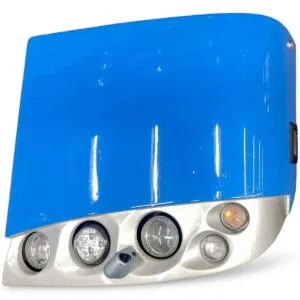 Carcasa pentru farul stânga este compatibilă cu modelele de autobuze Solaris și oferă o protecție durabilă pentru faruri. Designul său include un finisaj albastru lucios cu detalii argintii și integrează faruri și lumini de semnalizare pentru o vizibilitate maximă.