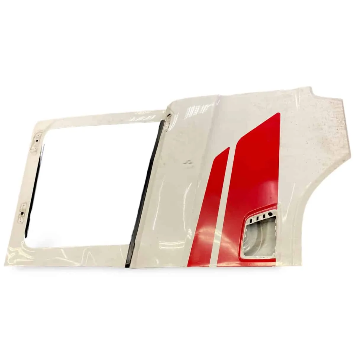 Carcasa ușii dreapta pentru camioane Scania, coduri 2653997 și 2044984. Produsul este de culoare albă, cu un design distinctiv roșu pe partea inferioară. Carcasa este durabilă și proiectată pentru a se potrivi perfect cu modelele specificate de camioane Scania. Ideală pentru înlocuirea ușii vechi sau deteriorate, asigurând protecție și estetică camionului dumneavoastră.