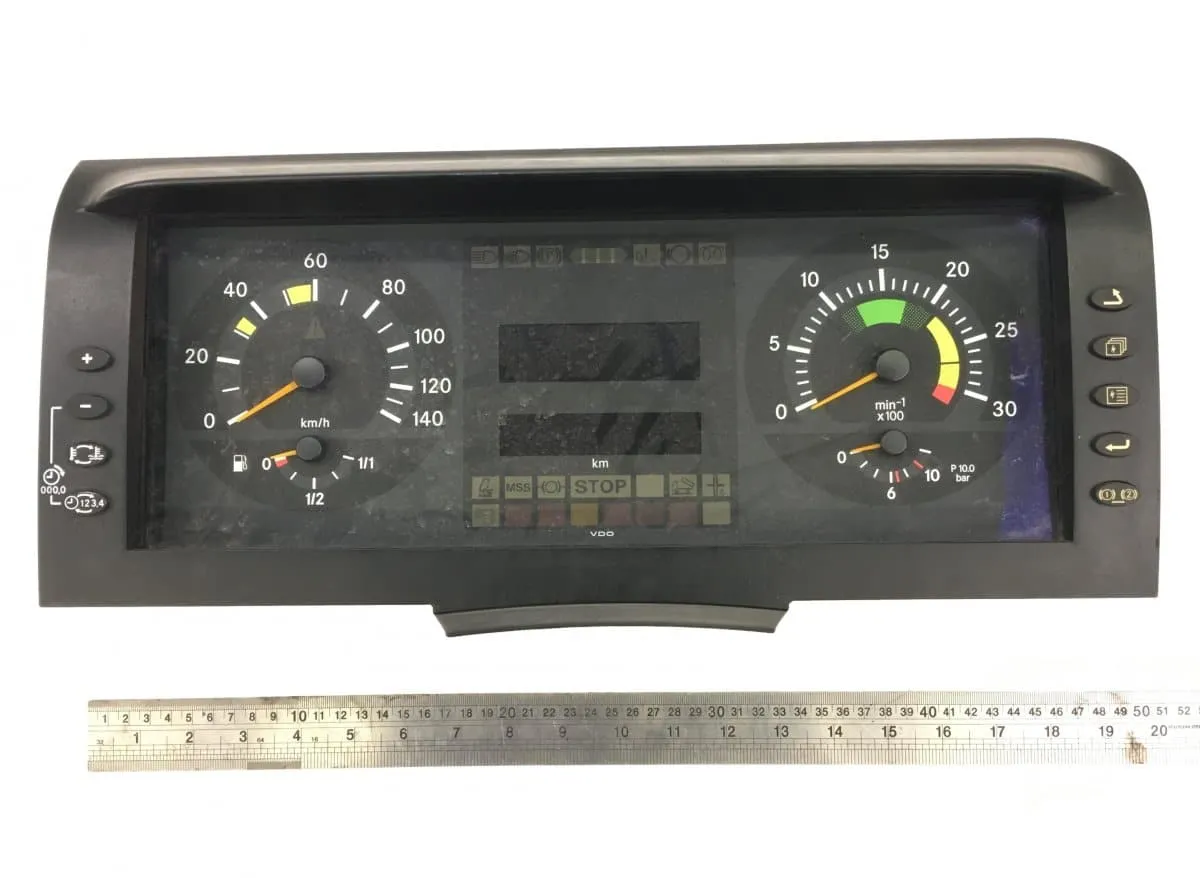 Acest ceas de bord pentru camion Mercedes Atego din 2003, model 0014462721, este un instrument esențial pentru monitorizarea performanțelor vehiculului tău. Panoul de bord include: