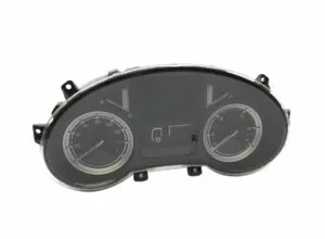 Ceas de bord pentru camioanele DAF, model 2114867, 2178608, 2039129. Acest instrument de bord este esențial pentru monitorizarea parametrilor vehiculului în timpul conducerii. Produsul prezintă două cadrane mari pentru afișarea vitezei și a altor măsurători esențiale, precum și un ecran central pentru informații suplimentare.
