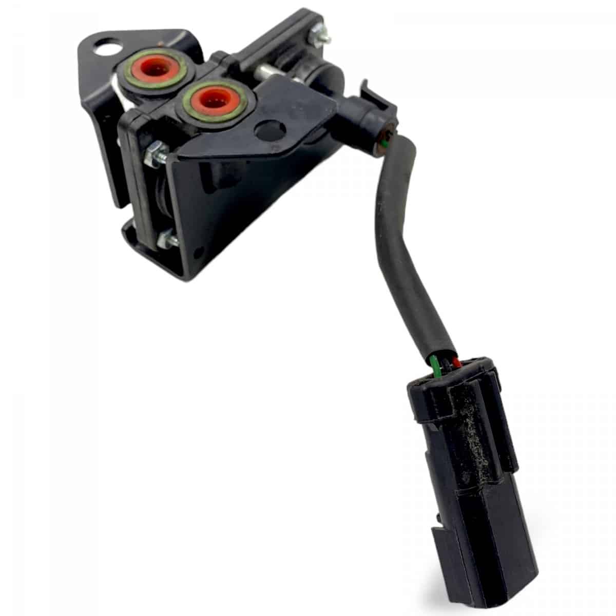 Descriere: Senzorul Solaris este un dispozitiv de înaltă precizie, proiectat pentru a oferi performanță și fiabilitate superioară. Este echipat cu o carcasă robustă din material plastic, având două componente circulare roșii protejate cu garnituri pentru a preveni intrarea prafului și a umidității. Conexiunea electrică se face printr-un cablu scurt, terminat cu un conector negru, cu patru pini, asigurând o instalare facilă și sigură.