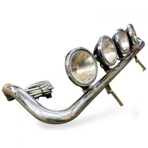 Acest set de faruri suplimentare pentru acoperiș MAN include patru proiectoare rotunde și un suport de montaj robust. Farurile sunt încapsulate în carcase metalice durabile, oferind protecție și longevitate. Suportul de montaj este conceput pentru a asigura o instalare sigură și stabilă pe acoperișul vehiculului.
