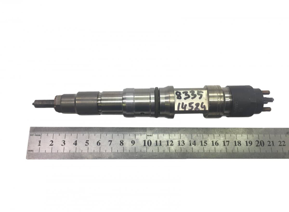 Dimensiunile injectorului sunt indicate în imagine, cu o lungime totală de aproximativ 20 cm, conform riglei de măsurare.