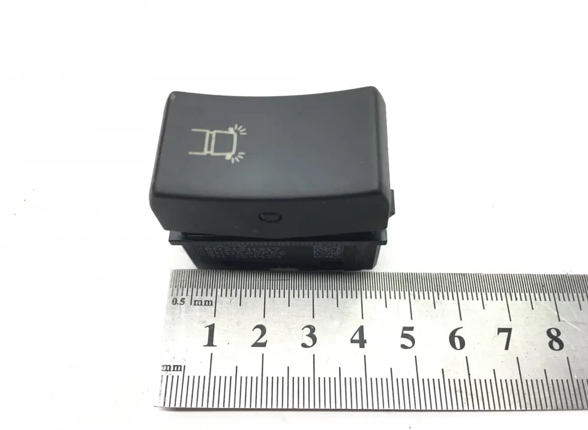 Dimensiunile întrerupătorului sunt optimizate pentru o integrare perfectă în panoul de control al vehiculului. După cum se poate observa din imagine, dimensiunile sale sunt aproximativ 4 cm în lungime și 2 cm în lățime, conform scalei prezentate.