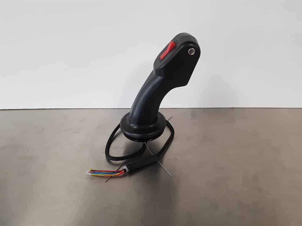 Acest joystick este o manetă de control de înaltă calitate, destinată utilajului Ahlmann AZ 45. Este fabricat din materiale durabile și oferă o manevrabilitate excelentă pentru operarea precisă a utilajului. Dispune de un design ergonomic pentru confortul utilizatorului și are un cablu de conectare cu fire colorate pentru o instalare ușoară. Butonul roșu pe care îl are încorporat asigură o funcționalitate suplimentară pentru operare.