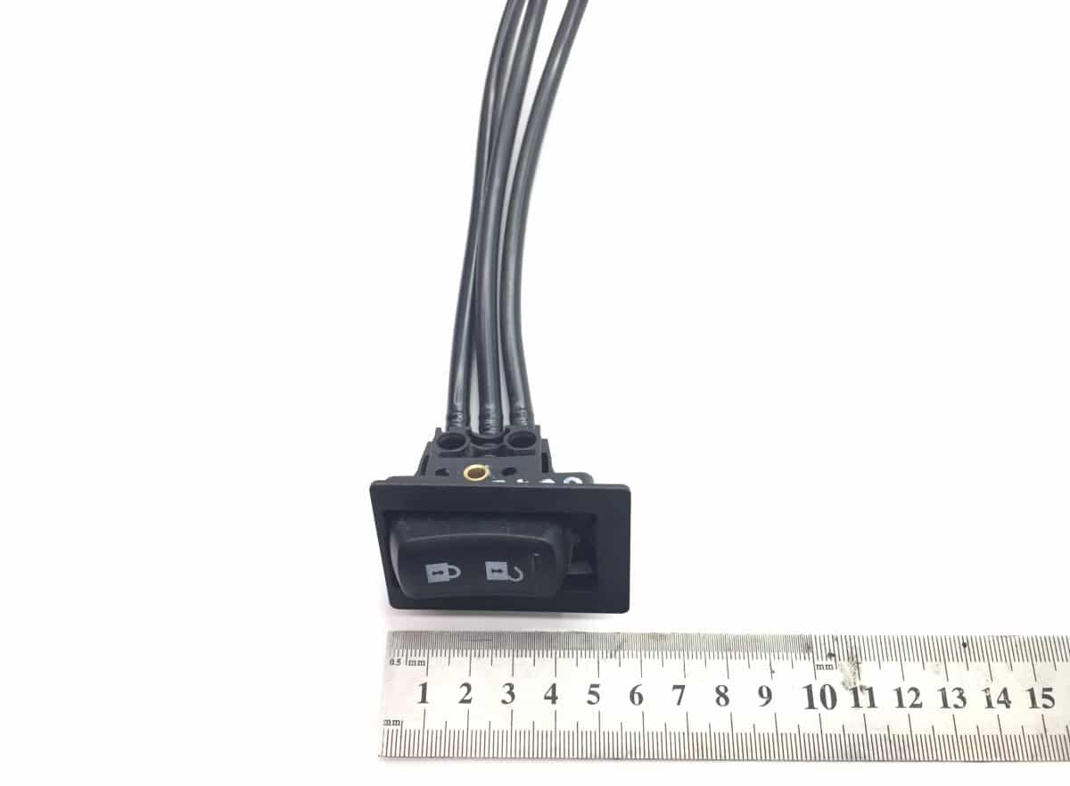Mânerul comutatorului de reglare a coloanei de direcție pentru Scania este un component esențial pentru ajustarea poziției volanului în vehiculele Scania. Acesta include un comutator cu două poziții și cabluri de conectare pentru integrarea facilă în sistemul electric al vehiculului. Dimensiunile sunt clar indicate cu ajutorul unei rigle, pentru a oferi o percepție exactă asupra mărimii sale.