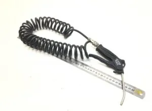 Pistol de suflat praf cu aer comprimat, ideal pentru curățarea rapidă și eficientă a suprafețelor. Este echipat cu un furtun spiralat, care asigură o flexibilitate sporită și o manipulare ușoară, permițând accesul în locuri greu accesibile.