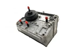Componente: trei ieșiri pentru lichid cu capace de protecție roșii, conector electric în partea superioară dreapta.
