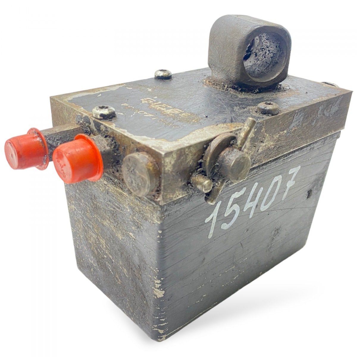 Această pompă de rabatare este destinată camioanelor Scania și este esențială pentru operarea corectă a rabatării cabinei. Este fabricată din materiale durabile și proiectată pentru a rezista în condiții de utilizare intensă. Piesa este numerotată cu codul 15407 pe carcasă și are două capace roșii de protecție pentru conexiuni.