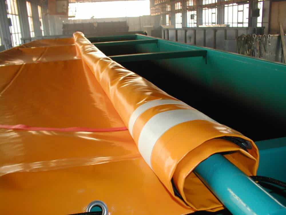 Prelată pentru container tip Abroll, confecționată din material durabil și rezistent la intemperii. Culoarea portocaliu intens asigură o vizibilitate sporită. Sistemul de prindere și fixare este robust, garantând o protecție eficientă a conținutului containerului. Potrivită pentru utilizare în medii industriale și de construcții, prelata asigură o acoperire completă și protecție împotriva factorilor externi.