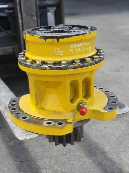 Acest reductor de rotire Komatsu este compatibil cu modelul PC 240-12. Produsul este de culoare galbenă și este dotat cu un sistem de angrenaje robust, proiectat pentru a asigura durabilitate și performanță ridicată în operațiunile de construcții și excavare. Reductorul prezintă o construcție solidă, cu mai multe orificii de montare pentru o fixare sigură și eficientă.