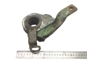 Regulator frână axă motrică dreaptă pentru camioane Scania. Acest regulator este compatibil cu următoarele coduri OEM: 2009820, 1789562, 1112834. Produsul prezintă o construcție robustă și durabilă, fiind ideal pentru înlocuirea pieselor uzate sau defecte ale sistemului de frânare. Dimensiunile sunt clar prezentate alături de o riglă pentru a asigura compatibilitatea exactă.