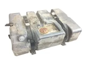 Acest rezervor de combustibil de 155 litri este special conceput pentru camioanele Volvo. Fabricat din material durabil, acesta asigură o capacitate mare de stocare a combustibilului pentru a susține călătoriile lungi și solicitante ale camioanelor. Rezervorul prezintă urme de uzură și rugină, dar este în continuare funcțional și robust. Este echipat cu chingi de prindere rezistente și un capac de acces central pentru umplere și întreținere facilă.
