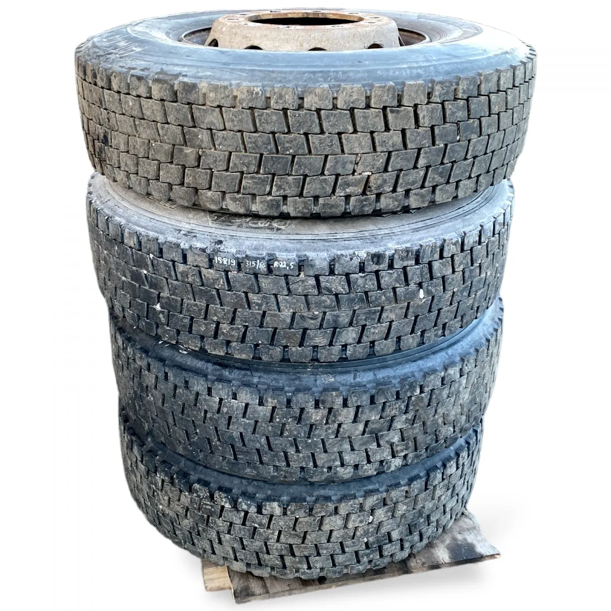 Set de 4 roți pentru camion Scania, dimensiuni 22.5×9.0, echipate cu anvelope de tip 315/80R22.5. Anvelopele prezintă un profil robust, ideal pentru utilizarea pe drumuri dificile și pentru transporturi grele. Structura solidă și durabilă asigură o performanță optimă și o durată de viață extinsă. Aceste roți sunt montate pe jante rezistente, potrivite pentru vehicule comerciale de mare tonaj.