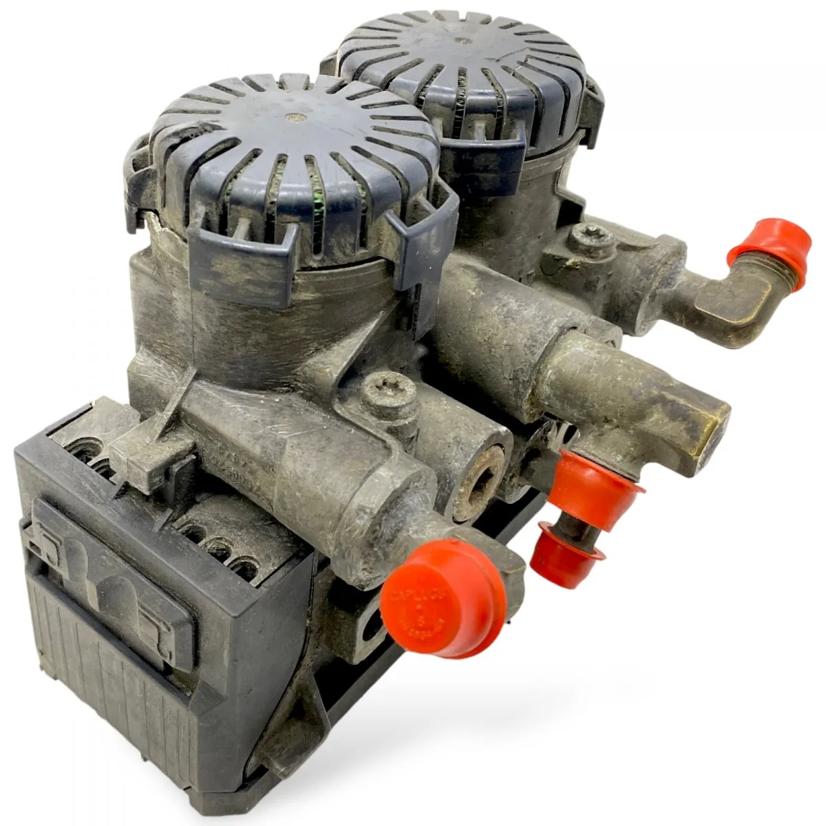 Supapa este prevăzută cu două module de control și mai multe conexiuni pentru a asigura o funcționare optimă și sigură a sistemului de frânare. Capacele de protecție sunt integrate pentru a preveni pătrunderea impurităților și a asigura o durată de viață mai lungă.
