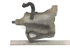Suport cabină dreapta față pentru Scania, compatibil cu codurile 1788234 și 2133303. Produsul este utilizat și prezintă urme de uzură normale, dar este în stare bună de funcționare. Dimensiunile aproximative sunt indicate în imaginea de mai sus, cu o scară de referință de 35 cm. Acest suport este esențial pentru stabilitatea și siguranța cabinei în timpul funcționării vehiculului.