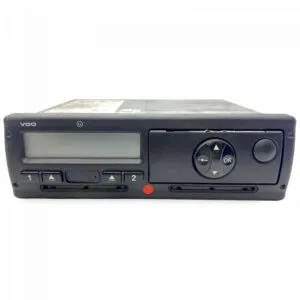 Dispozitivul prezintă un ecran digital pentru afișarea informațiilor esențiale și are butoane numerotate pentru acces rapid la funcțiile principale. De asemenea, include butoane direcționale și un buton central „OK” pentru navigare și confirmare. În partea frontală, tahograful are două sloturi pentru carduri de șofer, asigurând astfel utilizarea simultană a două carduri.