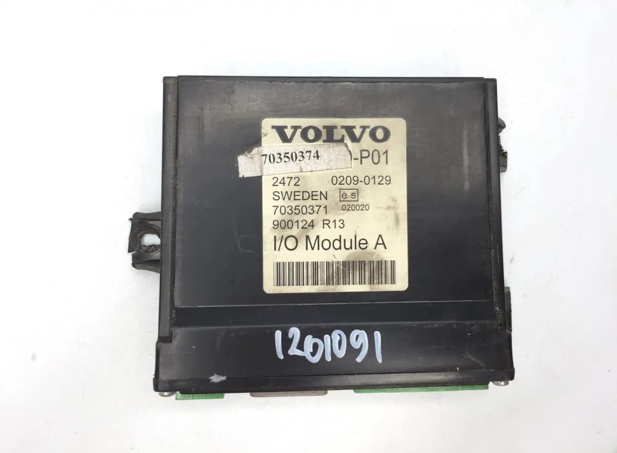 Acest modul de control I/O pentru Volvo, codurile 70350374, 70350490, 20585155, 70351743, 70370998, 70393900, 70395973, 70395987, 22561320, 22722832, 70350370, 70350353, 70303588, este o componentă esențială pentru vehiculele Volvo. Produsul este fabricat în Suedia și are inscripționat codul 70350371. Este identificat drept „I/O Module A” și vine cu un cod de bare pentru identificare ușoară. Pe partea frontală a unității este prezent și un număr de identificare 1201091.